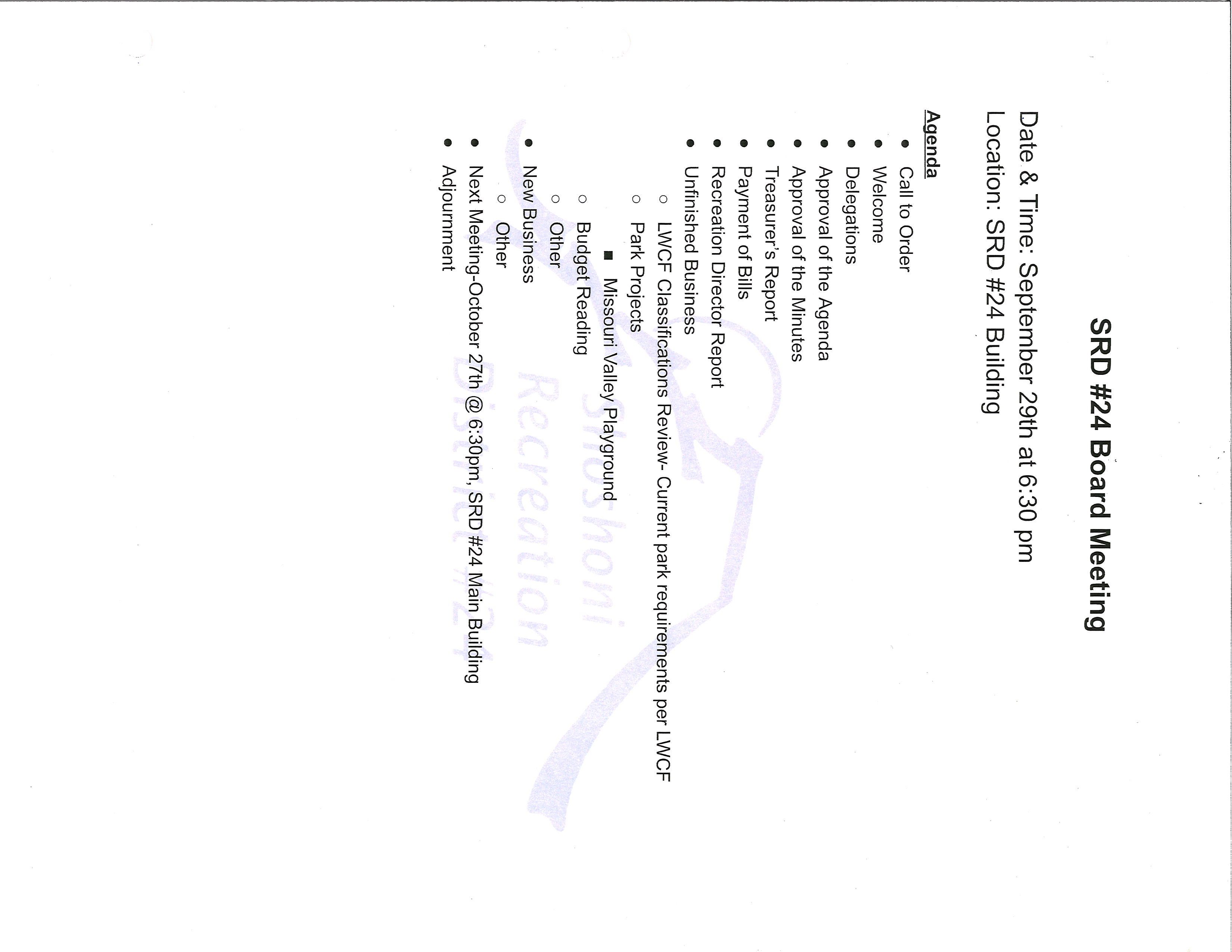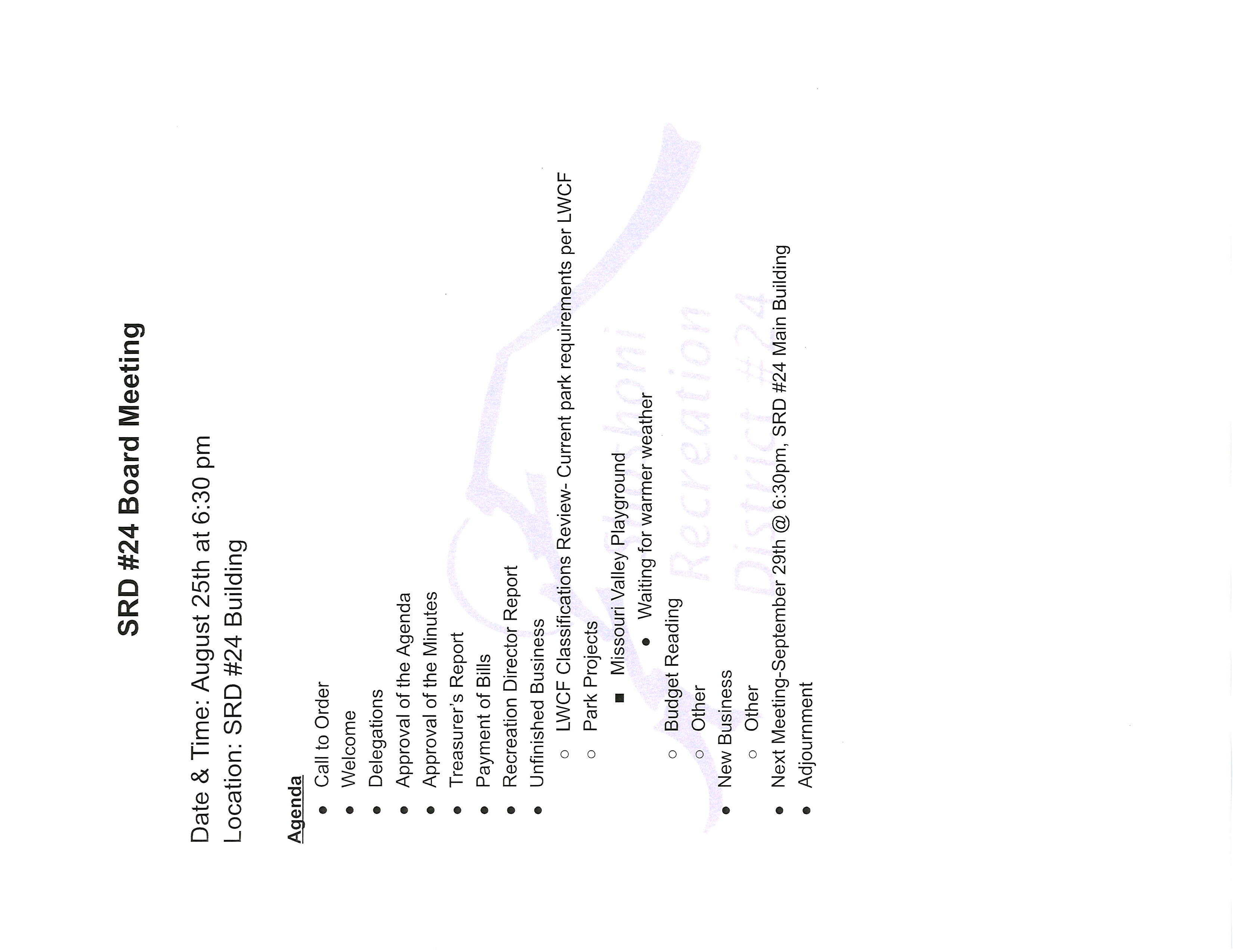 May 19th, 2025 at 6:30pm at the SRD. Meeting date changed due to Memorial Day.