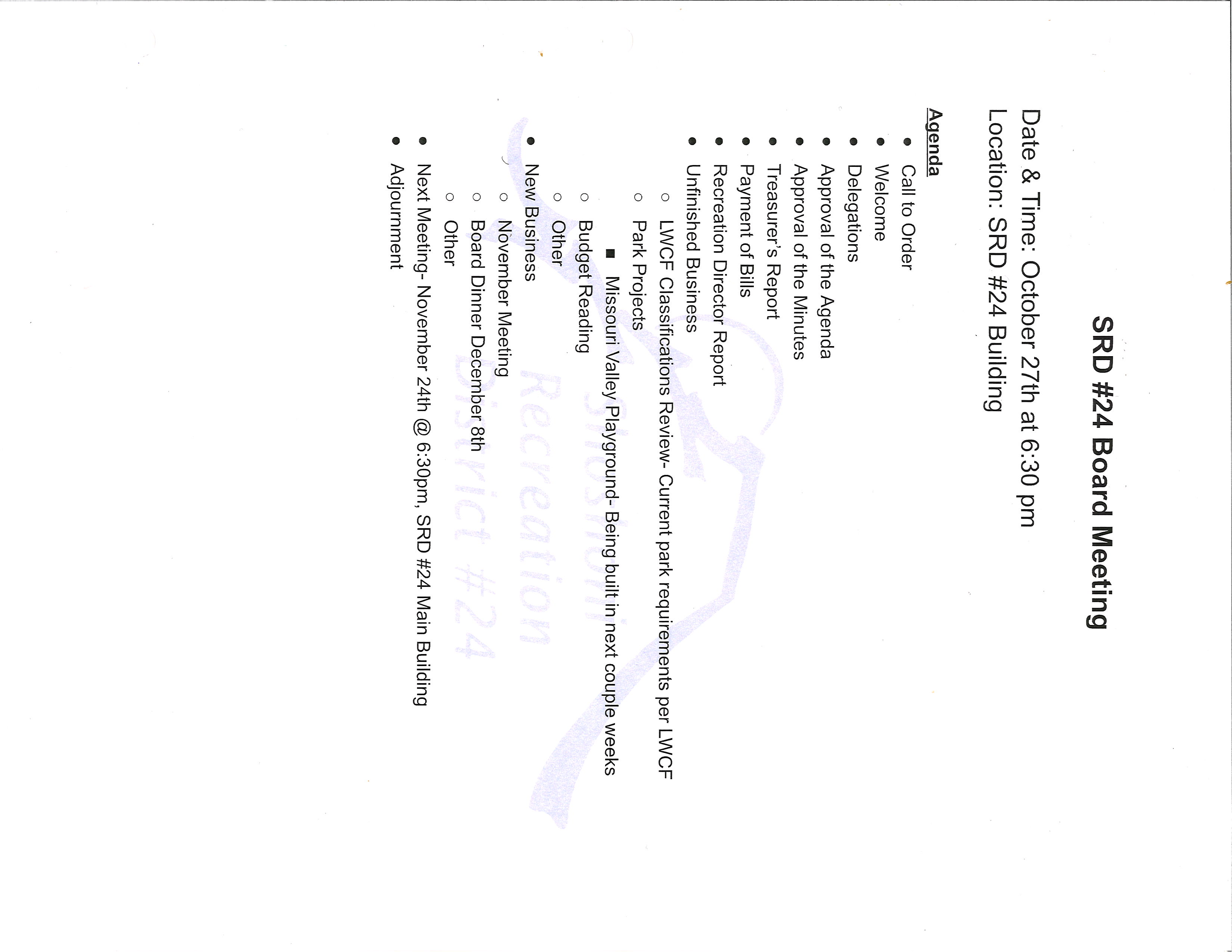 December 8th, 2025 at 6:30pm at the SRD. Meeting date changed due to Christmas.